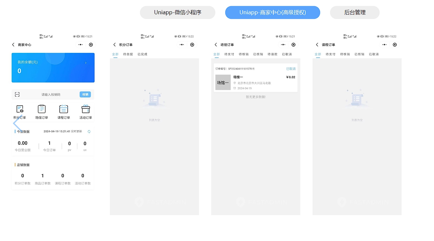 基于ThinkPHP+FastAdmin+UniApp开发的多场馆场地预定小程序,提供运动场馆运营解决方案,适用于体育馆、羽毛球馆、兵乒球馆、篮球馆、网球馆等场馆